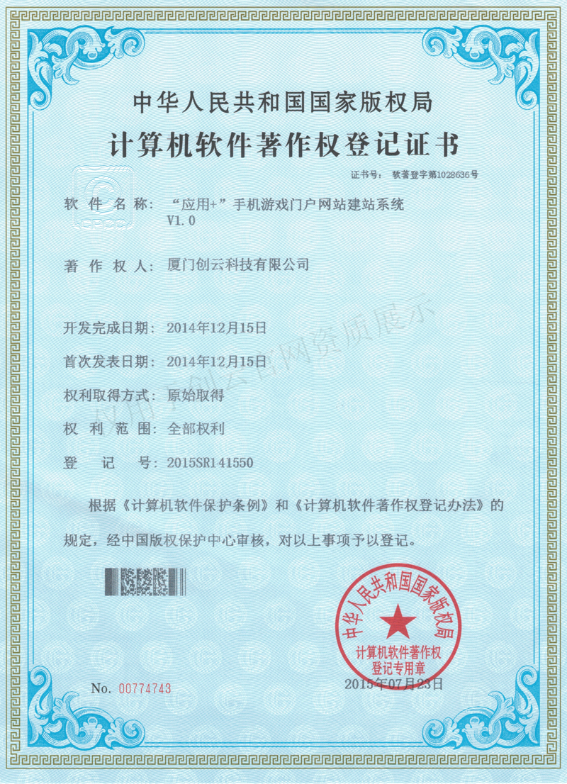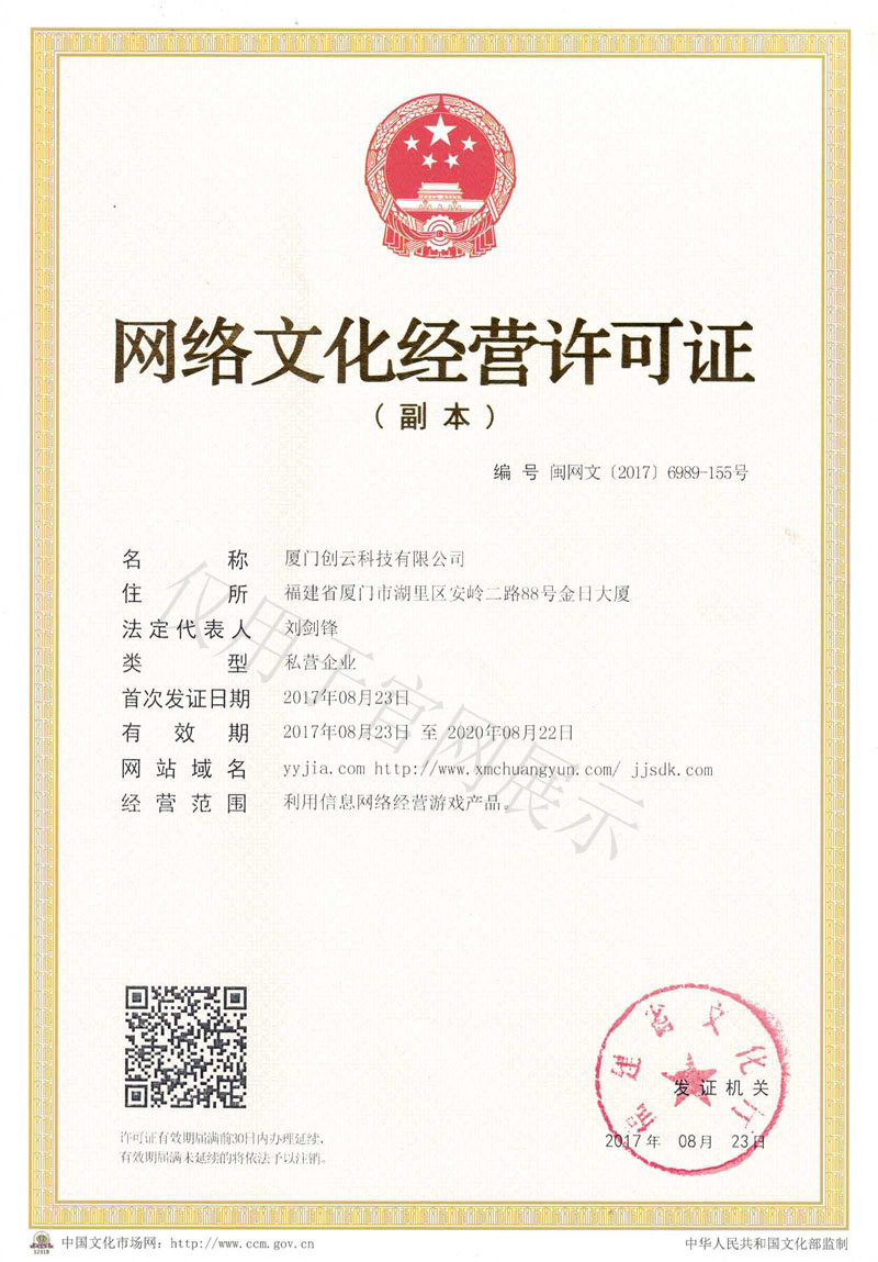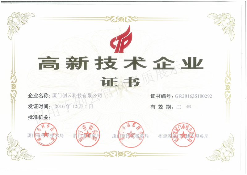 廈門(mén)市動(dòng)漫企業(yè)認(rèn)定證書(shū)