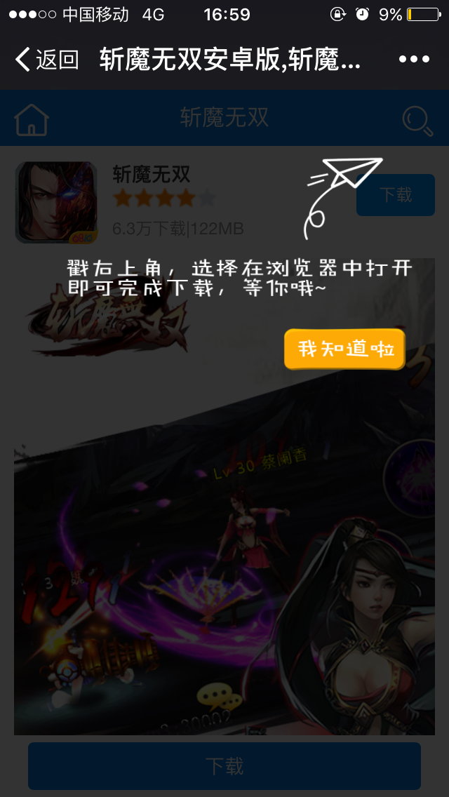 當(dāng)我們的手游、APP內(nèi)部加上微信分享功能,分享內(nèi)容到微信朋友圈,這時(shí)第一個(gè)頁面可以在微信打開,但是里面引導(dǎo)用戶下載的鏈接會(huì)被微信屏蔽,不能直接點(diǎn)擊。本次更新在用戶下載時(shí)新增了引導(dǎo)頁,有提示用戶在瀏覽器中重新打開,這樣就不受微信限制了。這樣站長們就可以放心大膽的利用微信朋友圈的力量來推廣產(chǎn)品啦。